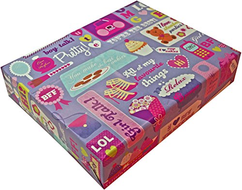 7 motivi in totale: 2 fogli x 5 fantasie (nel caso si abbia la necessità di incartare regali più grandi), mentre i 2 fogli restanti presentano 2 fantasie differenti.