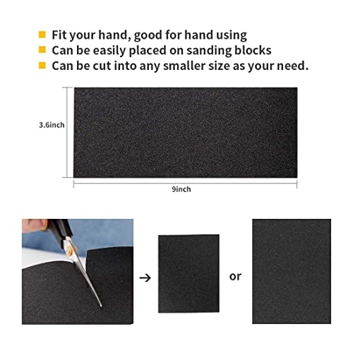 Carta vetrata, carta vetrata bagnata e asciutta, utilizzata per lucidare metallo, legno, automobili, 42 fogli di carta 9 x 3,6 pollici ciascuno