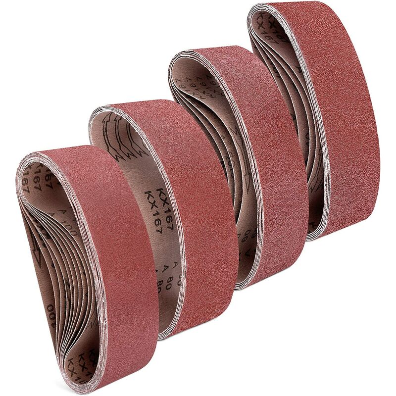 CONFEZIONE CONVENIENTE: i cinturini ti aiutano a levigare più facilmente legni duri e teneri, gomma, pelle, plastica, pietra, vetro e metallo. La confezione da 25 offre molte possibilità. VARI GRANI: La confezione da 25 comprende: 5 pezzi 40, 5 pezzi 60, 5 pezzi 80 e 10 pezzi 100. Scegli l'aspetto di finitura che vuoi donare. SCELTA DEL LEGNO: Accessorio per levigatura ambivalente! Che si tratti di legno duro o tenero, materiali con componenti in legno o trucioli, o anche metallo, le lastre rimangono utilizzabili. COMPATIBILITA': Le strisce di carta vetrata possono essere attaccate a una normale levigatrice a nastro abrasivo meccanico/elettrico. NOTA: indossare protezioni per le orecchie e per gli occhi quando si utilizza una levigatrice orbitale per evitare schegge e detriti volanti.