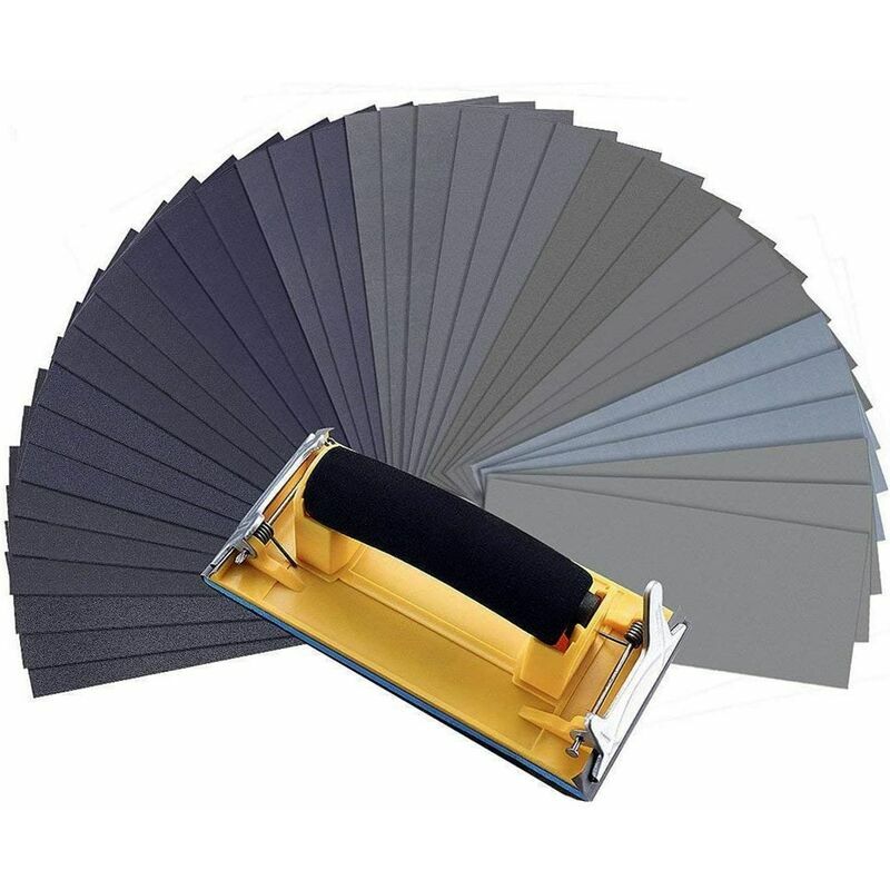 Confezione: 36 pezzi di carta vetrata fine 120/220/320/400/600/800/1000/1200/1500/2000/2500/3000 (3 fogli per ogni grana). E una levigatrice manuale in spugna;