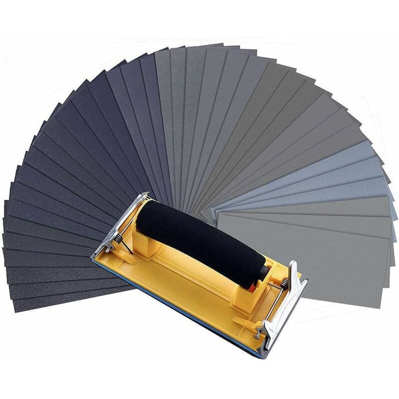 Pacchetto - 36PCS carta vetrata fine 120/220/320/400/600/800/1000/1200/1500/2000/2500/3000 (3 fogli per ogni grana). E una levigatrice a mano in spugna;