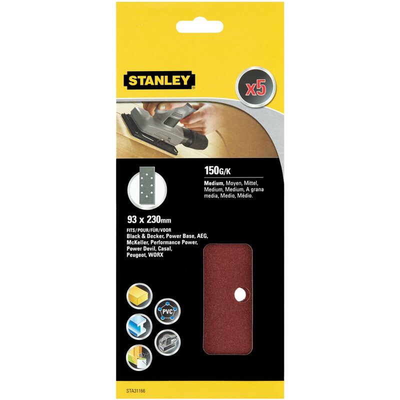 Carta vetrata Stanley - 230 x 93 mm - 5 pezzi