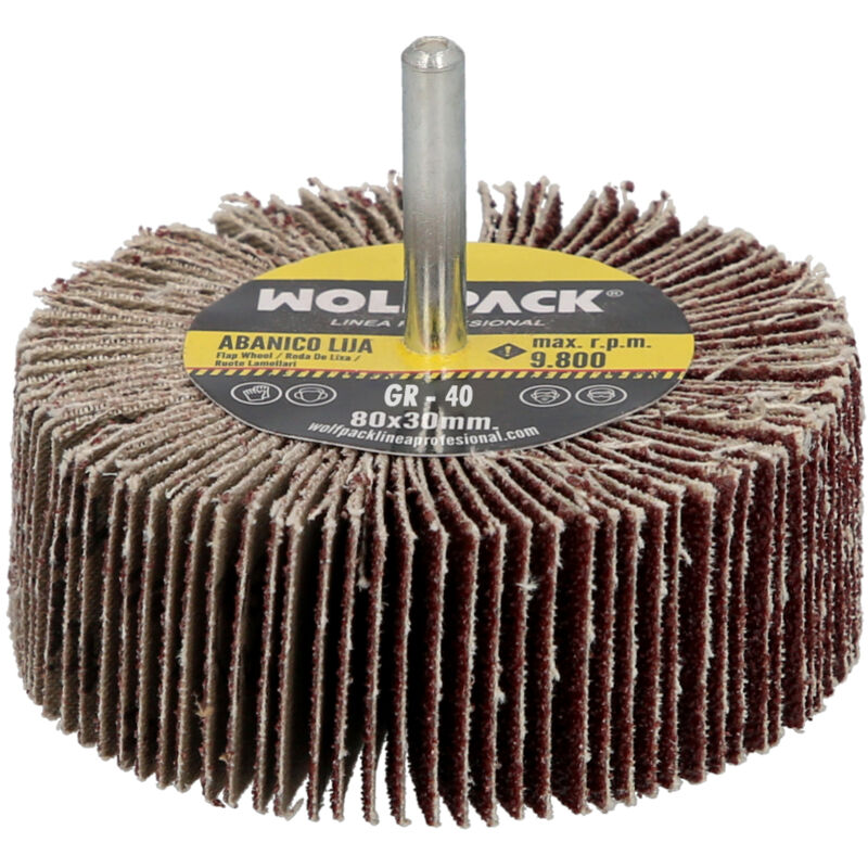 Carta vetrata a ventaglio - Grana 40. - Misure: 80x30 mm. - Da utilizzare con trapani/avvitatori