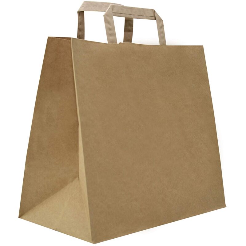 Descrizione Shopper in Kraft con fondo quadro, color Avana e con maniglia piatta, f.to cm 32+22x34, in ogni confezione trovi 50 pezzi