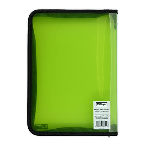 Cartella formato A4 con cerniera, realizzata in polipropilene impermeabile, colore verde, dimensioni 22,5 x 3 x 32,5 cm - MKtape