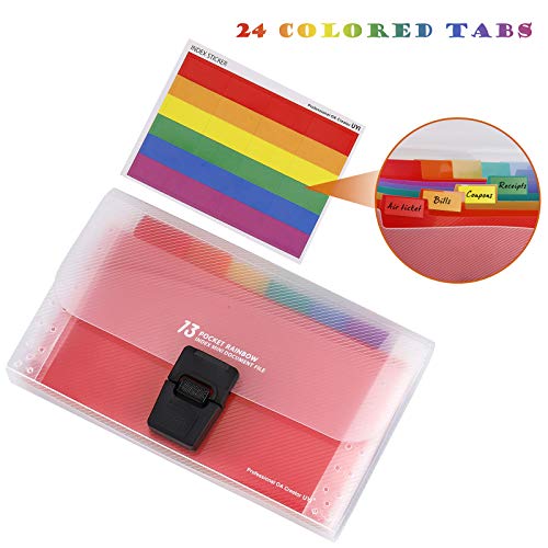 Grande capacità: la cartella di archiviazione ha 13 tasche per un facile ordinamento dei documenti. Le separazioni colorate consentono di trovare rapidamente i file. Ideale per archiviare documenti, fatture, lettere, ricevute, ecc.