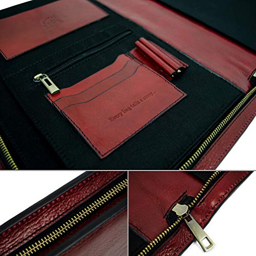 Cartella Portadocumenti A4 Fatta a Mano da Esperti Artigiani - Portadocumenti in Vera Pelle con Cerniera e Tasche Interne - Cartellina di Pelle da Lavoro e Ufficio - Time Resistance (Rosso)