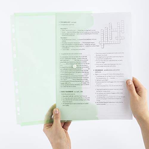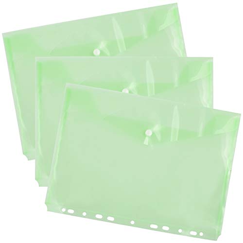 D.RECT - Cartella portadocumenti in PP, formato A4, con chiusura a scatto e bottone automatico, 10 pezzi, verde trasparente