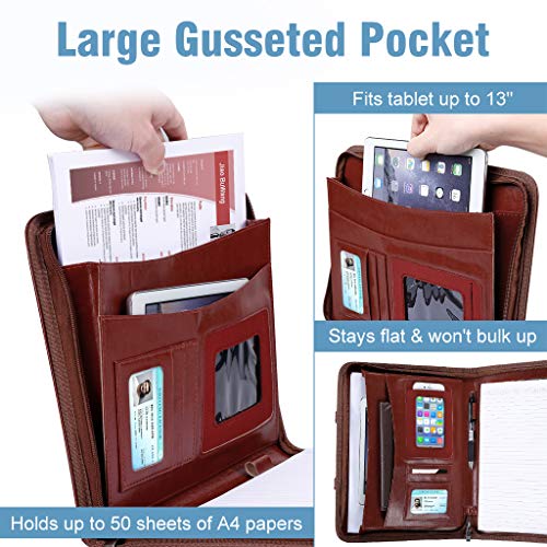 Cartella Portadocumenti, SLYPNOS Folder in PU, Organizzatore Documenti per Viaggio con Cerniera, Portatile e Impermeabile, adatto a PC di 13 pollici/A4/Carta/Taccuino/Quaderno, Color Ruggine