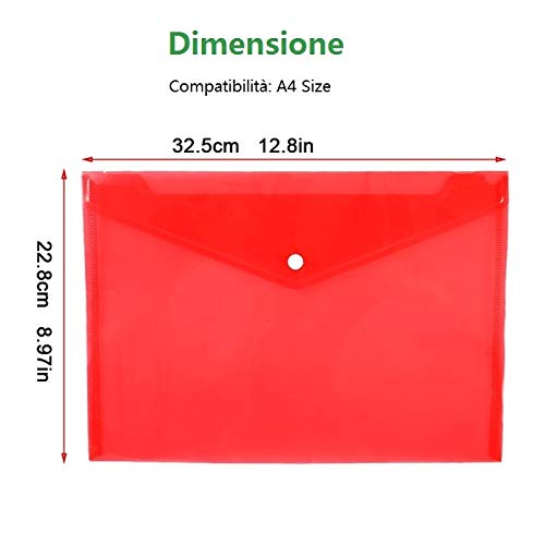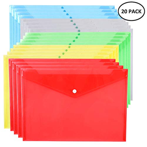 20 Pcs Cartelle Portadocumenti in Plastica Formato A4 Chiusura con Bottone a Scatto per Insegnanti Studenti Scuola Ufficio