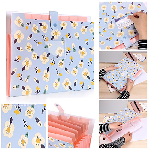 Cartellina A4 Btsky espansione fisarmonica - floreale stampato Archival file organizer portadocumenti Letter organizer con chiusura con bottoni automatici, 8-pockets Blue