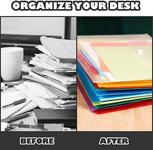 Cartellina Portadocumenti Trasparente A4 Cartelle Portadocumenti in Plastica, 12 Pezzi Trasparente Cartelle File con Tasca per Etichette e Bottone per Scuola e Ufficio, Colori Assortiti