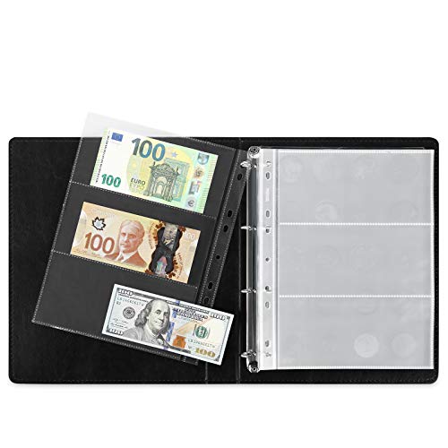 Cartellina vuota in PU classico, 4 album ad anelli, per francobolli, documenti, monete, banconote (nero)