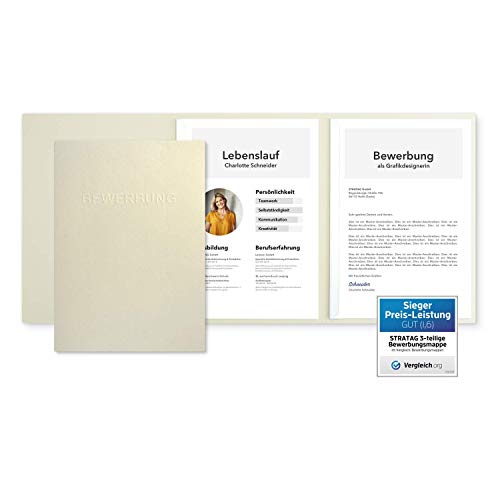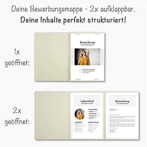 Cartelline per curriculum con pinza in 3 parti, cartelline in pelle pregiata (blu, beige-crema), 5 cartelline + 5 buste - Crema-Amarillento