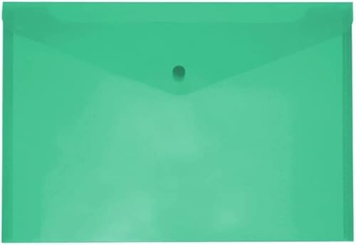 Cartelline portadocumenti blu trasparenti in polipropilene, Confezione 6 Buste orizzontali A4 con chiusura a bottone, Cancelleria archivio per Ufficio (Verde)