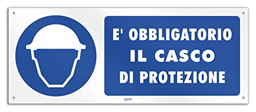 Cartello cm 30x12 - E' Obbligatorio il Casco di protezione (PVC spessore 1 mm con 4 fori)
