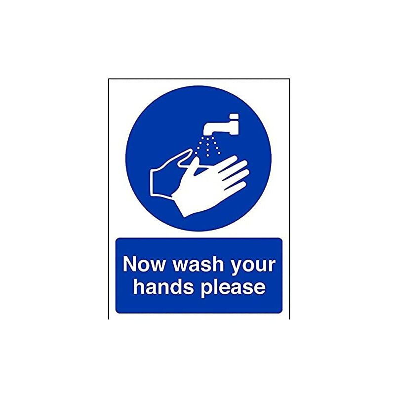 V Safety, cartello 43008AN-R autoadesivo con simbolo di lavaggio mani e scritta in ingleseNow Wash Your Hands Please, orientamento verticale, 150 x 200 mm, blu 150 mm x 200 mm