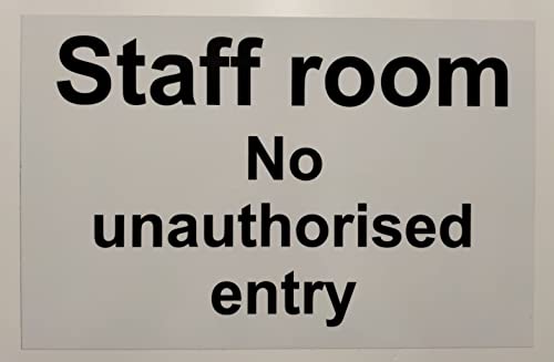Cartello adesivo, 300 x 200 mm, con scritta in inglese “Staff room No unauthorised entry”