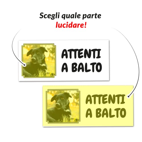 Cartello ATTENTI AL CANE personalizzabile con la foto del proprio cane, stampato a colori (Cartello Formato 200x90mm, Testo standard)