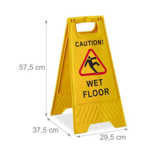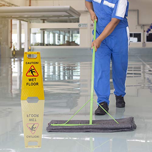 3x Cartello Avvertimento Anti-Scivolo, in Inglese Segnale Pieghevole Caution Wet Floor, Scritta su 2 Lati, Giallo