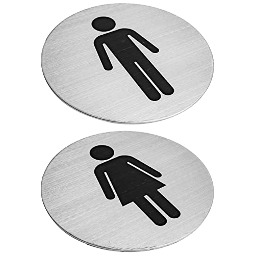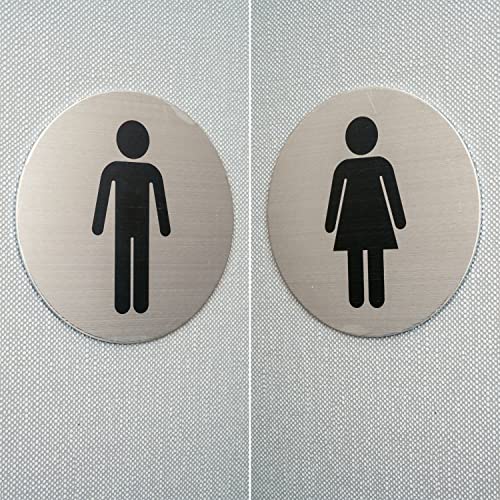 ✅ [Contenuto della confezione] 2 targhe per porta WC, da incollare, con immagine di uomo e donna, design 3, scritta nera su sfondo in alluminio spazzolato.
