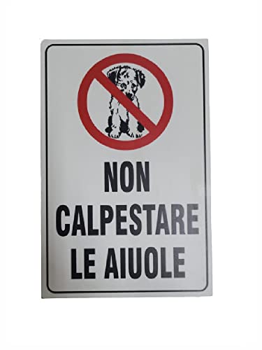 Cartello non calpestare le aiuole 20X30 CM pvc forex spesso 3mm, 4 fori,da appendere per evitare che i cani calpestino le aiuole, cartello di divieto vietato + 1 portachiavi corni