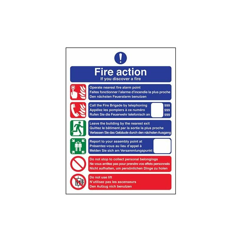 V Safety - Cartello multilingue per la chiamata dei vigili del fuoco, in plastica rigida, 150 mm x 200 mm, 1 mm 150mm x 200mm