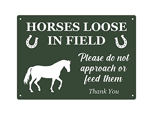 Cartello con scritta "Horses Loose In Field, Do Not Feed Or Approach Horses | Colori a scelta: verde o marrone, formato A4, resistente alle intemperie per esterni con fori per trapano. (verde)