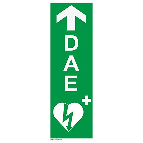 Cartello Segnaletico per Defibrillatore DAE con Freccia in Alto | 30 x 10 cm | Spessore 2 mm