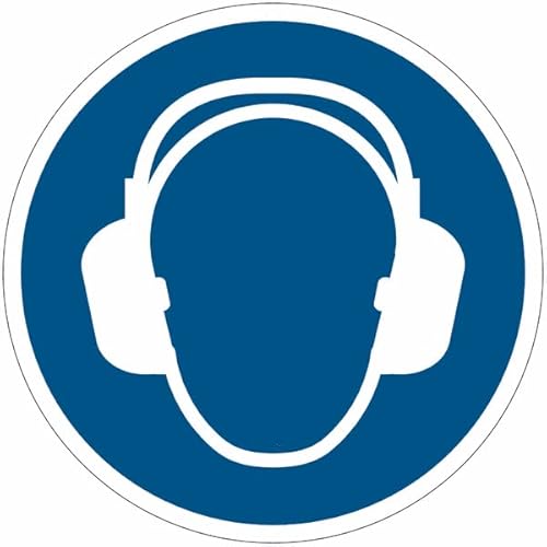 CARTELLO SEGNALETICO ROTONDO ISO 7010 - Indossare la cuffia antirumore - Adesivo Extra Resistente, Pannello in Forex, Pannello In Alluminio (ADESIVO 20 CM)