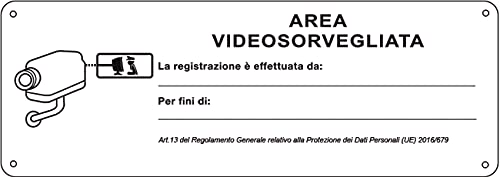 CARTELLO SEGNALETICO UNI - AREA VIDEOSORVEGLIATA + spazio da compilare - Con Adesivo in Vinile e Pannello in Forex (Adesivo)