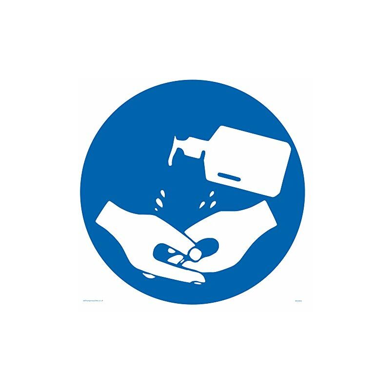 Cartello con simbolo igienizzante per le mani, composto in alluminio da 3 mm.