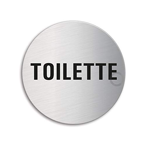 Cartello - Toilette WC | Targhette Targa acciaio inox Ø 75 mm autoadesivo | Ofform Design Originale No.8502