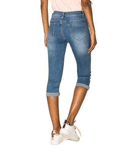 Nina Carter P132 Capri Skinny Fit Jeans a vita alta, effetto lavanderia, Blu (P132-5), XXL
