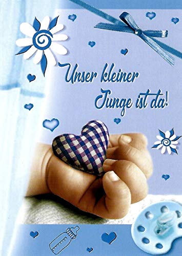 Cartolina nascita bambino con testo interno motivo il nostro piccolo bambino è arrivato. K218 - Biglietti in formato DIN A6 verticale, con buste bianche, per la nascita 14,8cm x 10,5cm Blu