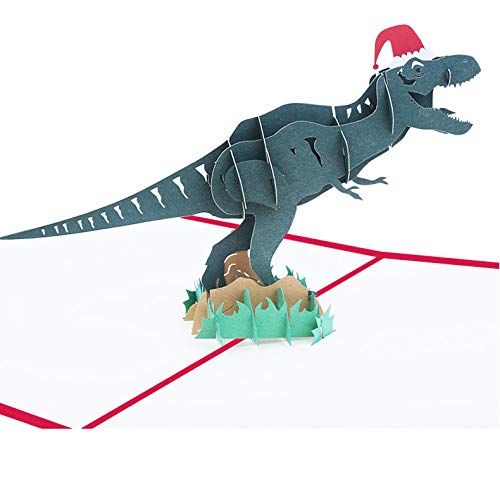 Cartoline di Natale pop-up 3D, biglietti d'auguri artigianali fatti a mano, dinosauro con cappello Chirstams, biglietto pop-up