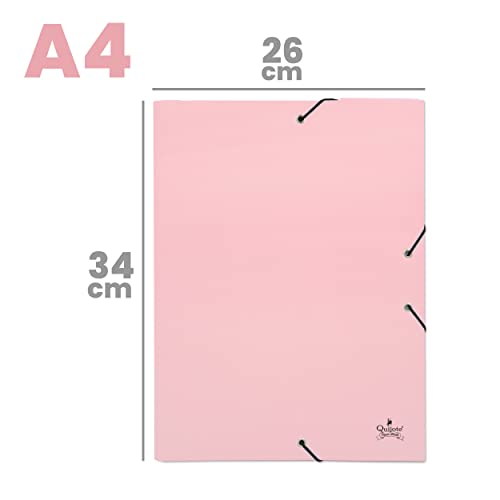CARTONE CARTONE FORRATO QUIJOTE PAPER WORLD - Portafogli, raccoglitore o classificatore, chiusura elastica, colori pastello, formato A4, per uso scolastico o ufficio - Carne