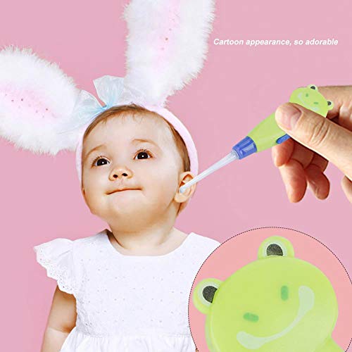 Cartoni animati per bambini Pulitore di cera per orecchie luminoso Torcia elettrica Raccoglitore per orecchie Pulitore di cerume in plastica con luci a LED per bambini(RANA VERDE)