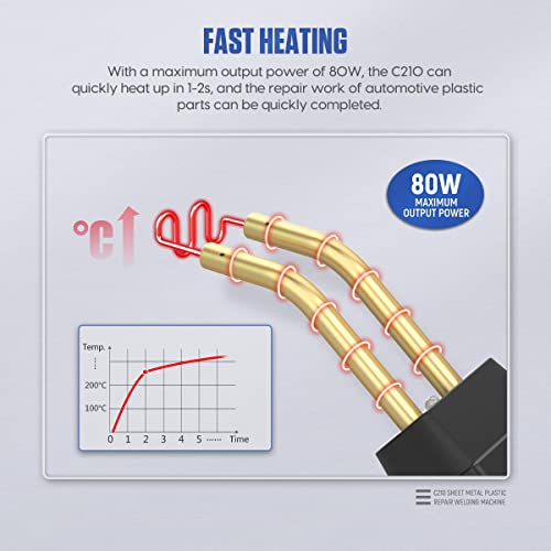 【Riscaldamento rapido: impostazione sicura】La saldatrice elettrica ha una potenza massima di uscita di 8Ow, può riscaldarsi rapidamente in 1-2 secondi e completare rapidamente la riparazione di parti in plastica automobilistiche. Le luci a LED anteriori con porta di saldatura illuminano aree di lavoro scure, rendendole più sicure e comode da usare.