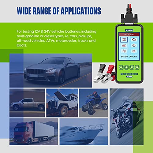 MR CARTOOL B300 - Tester digitale per batteria auto, 12 V, 24 V, 100-2000 CCA per auto, analizzatore di carico, sistema a manovella, per auto, moto, camion, SUV