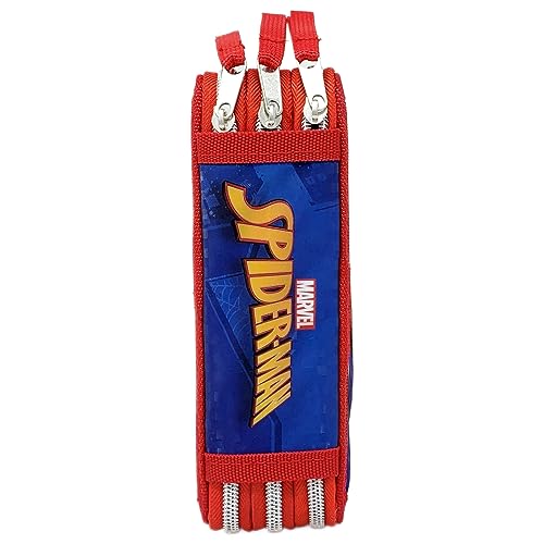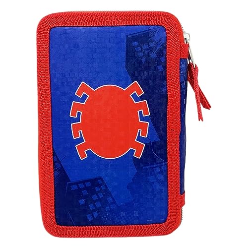 CARTOON Astuccio Scuola 3 Zip Spiderman, Marvel, multiscomparto, Completo 44 Pezzi, Colori Giotto, 20 x 13 x 6 cm