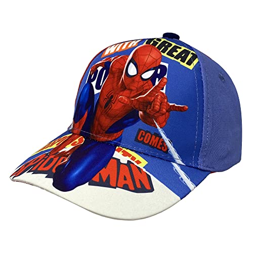 CARTOON Cappello con Visiera, Marvel, Spiderman, Berretto Estivo per Bambini, Regolabile, 52 cm, Blu
