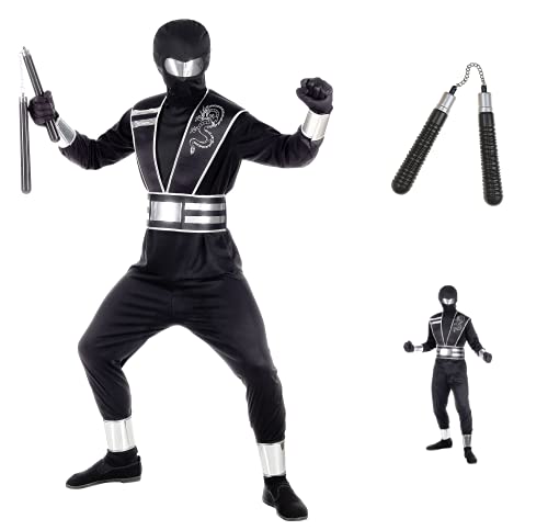 CARTOON Costume di carnevale + accessori, Mirror Ninja, nunchaku, vestito, travestimento, per bambini, halloween, feste a tema
