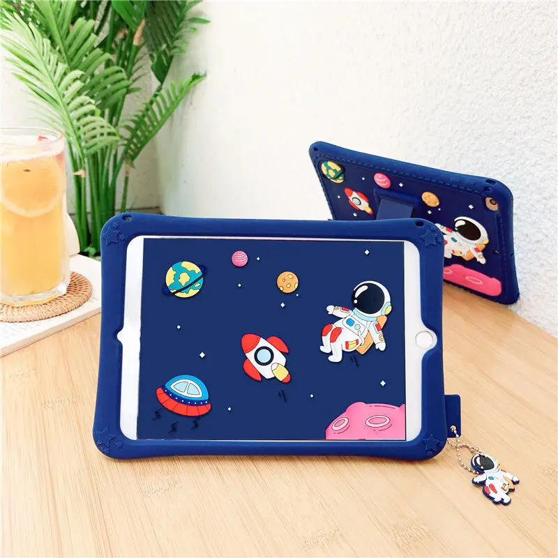Case For iPad Mini 1 2 3 4 5 Air 2 Pro 9.7 Cartoon Kids Cover For iPad 9.7 2017 2018 5th 6th 7th Gen 10.2 Silicon Funda + Strap
