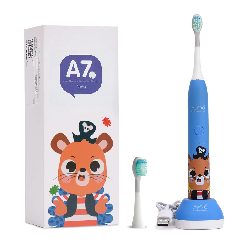 Cartoon Kids Electric Toothbrush Apiyoo A7 Sonic for Design 3 Modes with Timer Waterproof Adjustable Vibration Intensity Gift