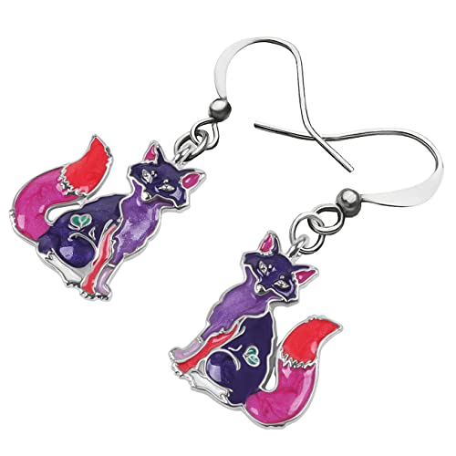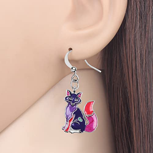 Lega Cartoon Fox Orecchini Smalto Goccia Dangle Gioielli di moda per le donne ragazze Anime Charm Gift (Viola)