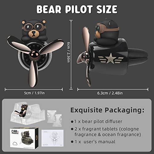 Cartoon Bear Pilot Deodorante Auto, Car Air Freshener, Profumo Auto Diffusore Auto Ventilatore Per Auto, Profumo Aromaterapia Ornament, Outlet Ventilatore Deodorante Vent Clips (Nero)