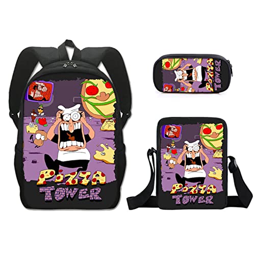 Cartoon Pizza Tower 3pcs/Set Zaino 3D Print School Student Bookbag Travel Laptop Daypack Borsa A Tracolla Astuccio 19,40 * 30 * 13CM