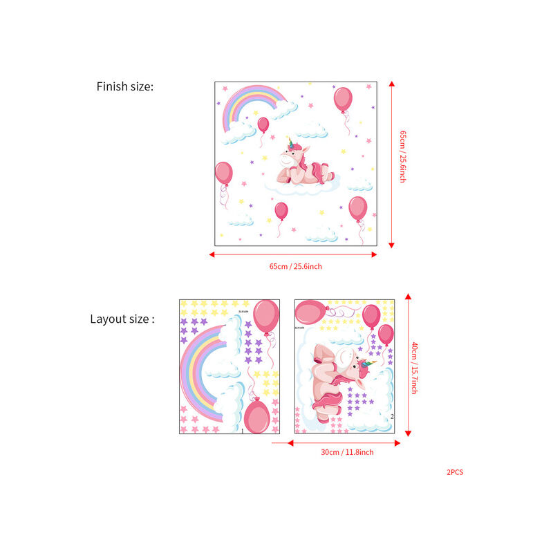 Cartoon Unicorn Horse Rainbow balloon Star Shape Pattern Wall Sticker For Kids Room Decoration Diy Animal Mural Art Pvc Decal,20cmX30cmx2pcs