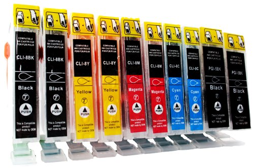 10x cartucce compatibili per CANON PGI-5 / CLI-8 XL Ink | contenuto: 2x PGI 5 BK & 2x CLI 8 BK/C/M/Y | accoppiamento Canon Pixma MP500 MP510 MP520 MP530 MP600 MP600R MP610 MP800 MP800R MP810 MP830 MP960 MP970 MX700 MX850 iP4200 iP5200